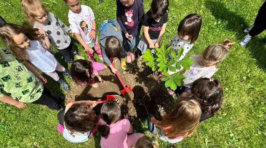Representatives of the City of Banja Luka, together with children from the “Kod bake” kindergarten, planted wild chestnut saplings in Mladen Stojanović Park as part of the “Clean Face of the City” campaign.