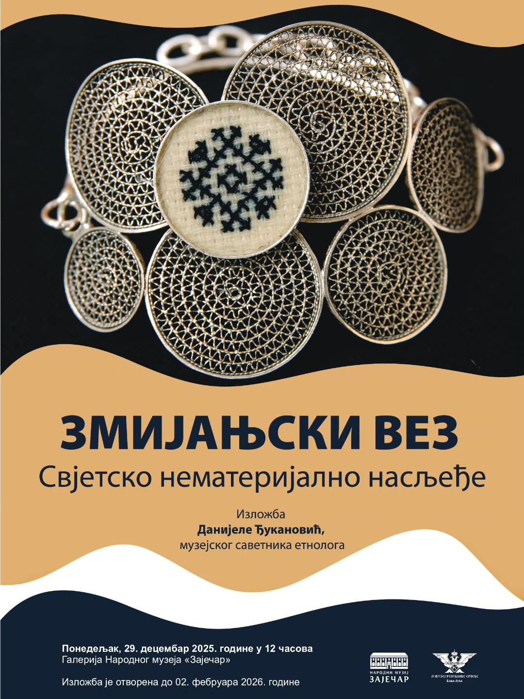 Izložba "Zmijanjski vez - Svjetsko nematerijalno nasljeđe" svečano je otvorena 29. decembra 2025. godine u Galeriji Narodnog muzeja u Zaječaru.